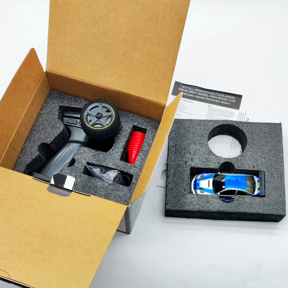 Fabricado a escala 1:43 con carrocería moldeada por inyección ABS, este modelo no solo se ve premium: se siente sólido, real y preparado para correr. Es más que un coche RC: es una máquina de derrapar, afinada para sacar sonrisas incluso a los más puristas del drift.
